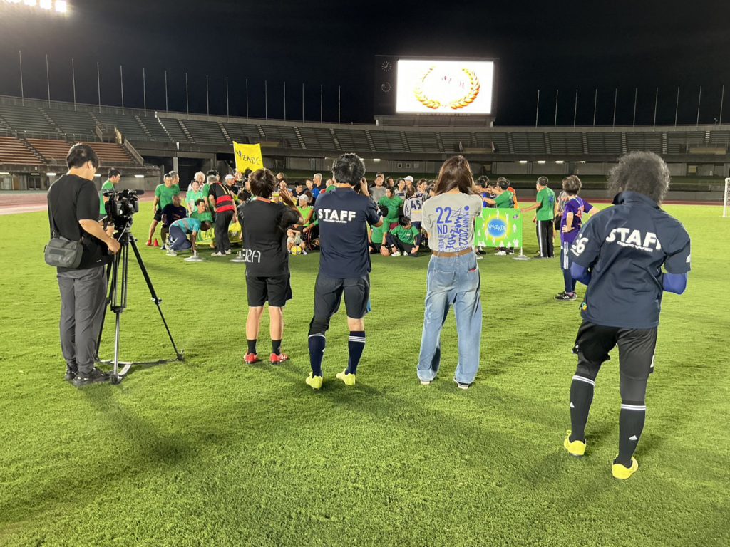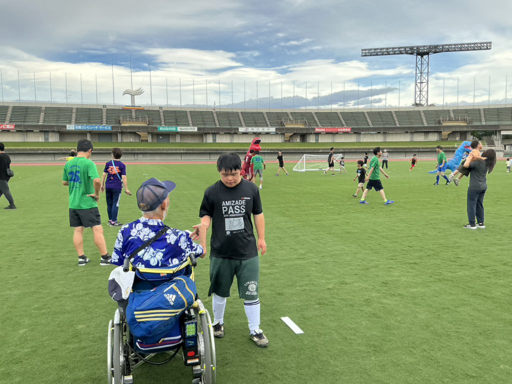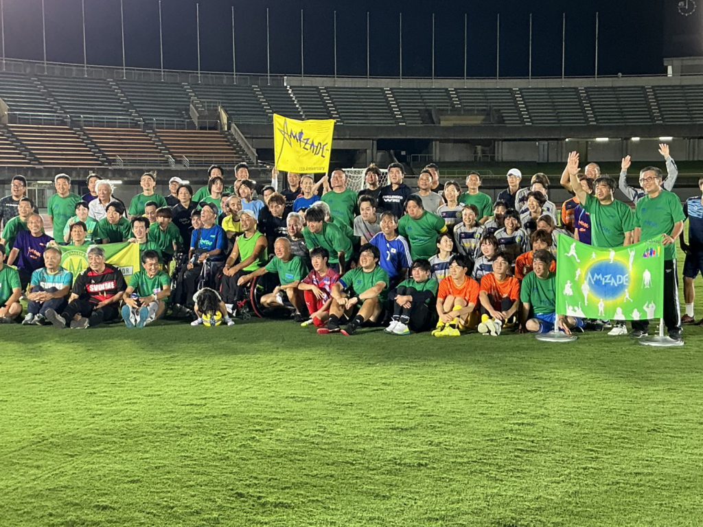 この大会は、 障がいがあるかどうか、年齢、男か女かなど、何の関係もなく、全ての人が、サッカーを通してふれ合い、交流することを目的にしておられます。「アミザーデ」とは、ポルトガル語で友情の意味です。