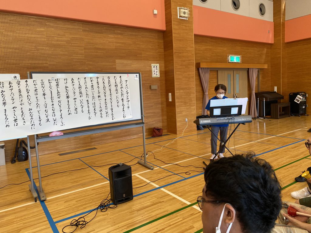 必ず文化プログラムの最後に歌う歌、「 夢にむかって 」。