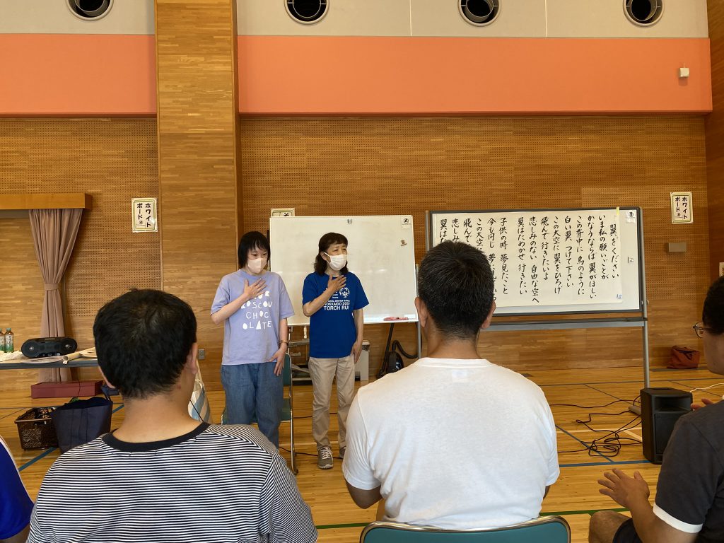 文化メンバーの中に、手話の得意なアスリートがいることをきっかけに、毎回、手話をしながら歌を歌っています。もちろん先生は、アスリートのTさん。