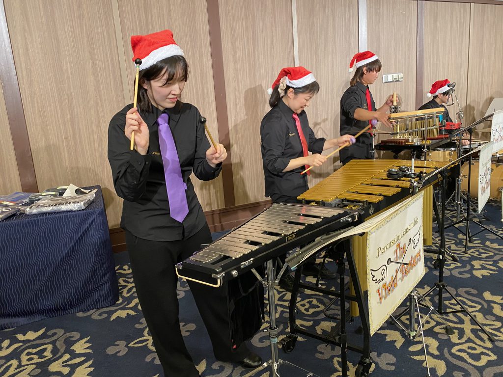 写真をご覧になってわかられると思いますが、マリンバ(木琴?鉄筋?)やドラムなど、打楽器で演奏をされるグループです。