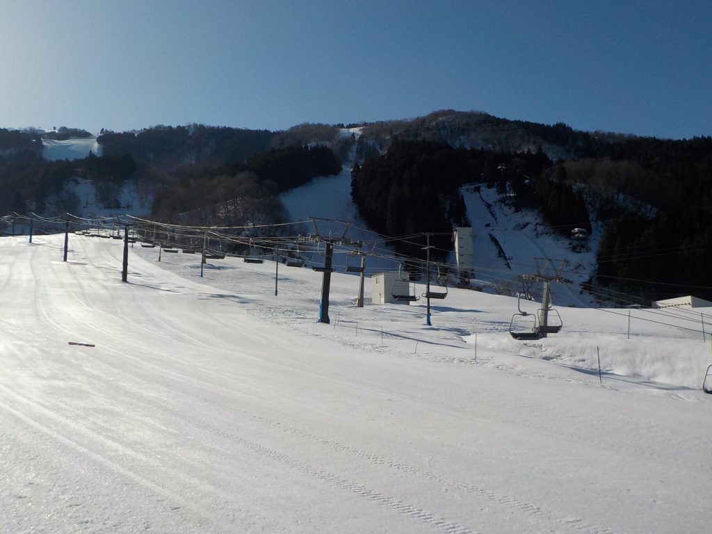 実は、こんなに天気が良く見える立山山麓スキー場ですが、この日は、風のため、すべてのリフトが朝から終日クローズとなっていました。
