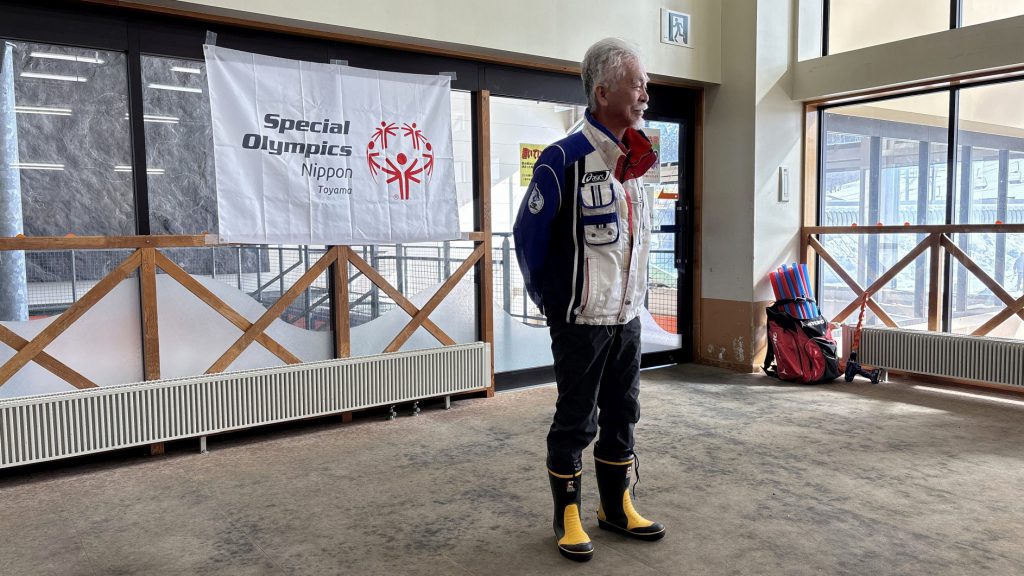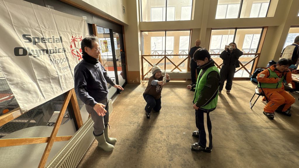 なお、開会式の間、大角ヘッドコーチはたくさんのポールを抱えて、コース作成中。