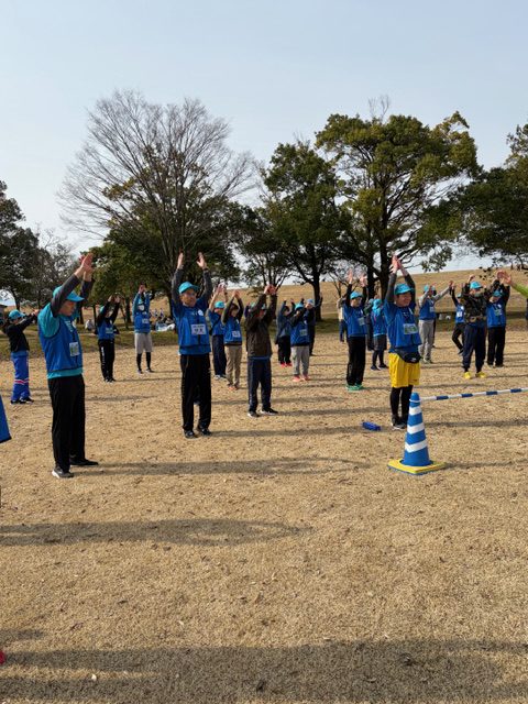 写真撮影の後は、ラジオ体操で体をほぐします。