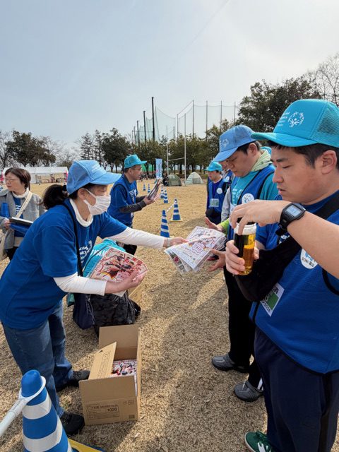 今回は、常願寺川マラソンで、より多くの方々にPR出来たらと考え、大会に出場すると同時に、皆で、会場でチラシや粗品をお配りすることにしました。