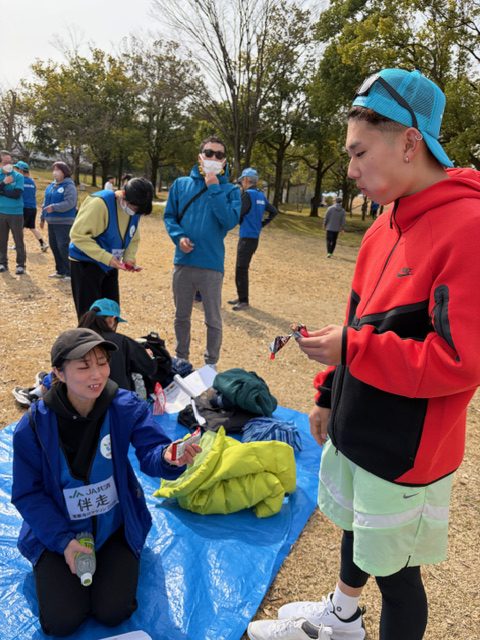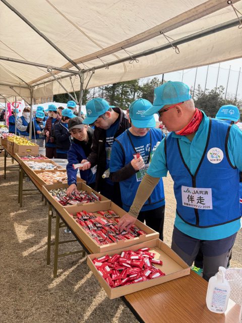 会場では、アルビスさんのご厚意で、”元気が出るおやつ”がたくさん配られていました。 レース前後の栄養補給にピッタリですね!みんな嬉しそうに選んでいました。