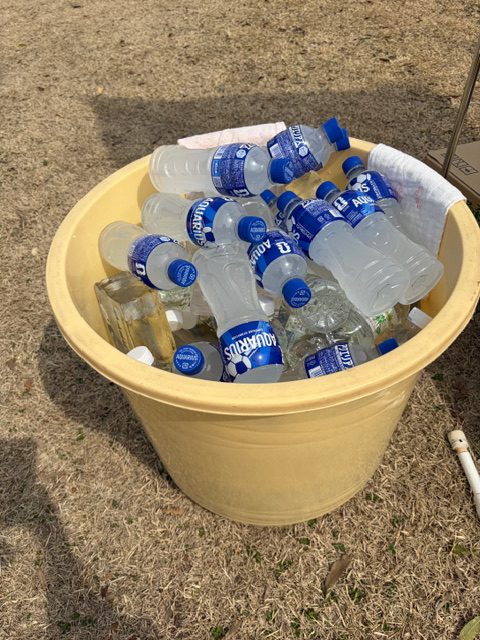 当会理事の宿屋さんが、参加者への水分補給にと、水と大きな氷と大量のペットボトルを中にザバーっと入れて作られました。 みごとなアイディアです ☆