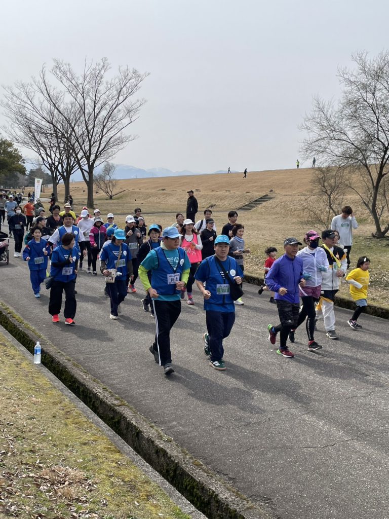 服装は「青色ビブス」×「SON・富山のロゴ入りキャップ」で統一感を出していたので、スタート地点に向かって青い軍団がゾロゾロ移動する姿はとても目立っていました。